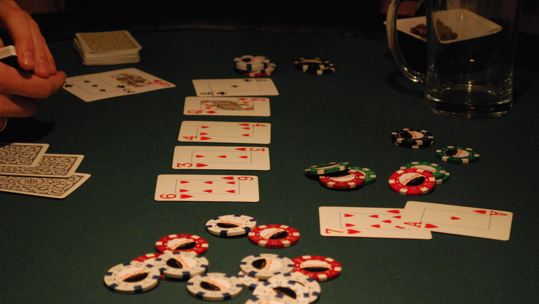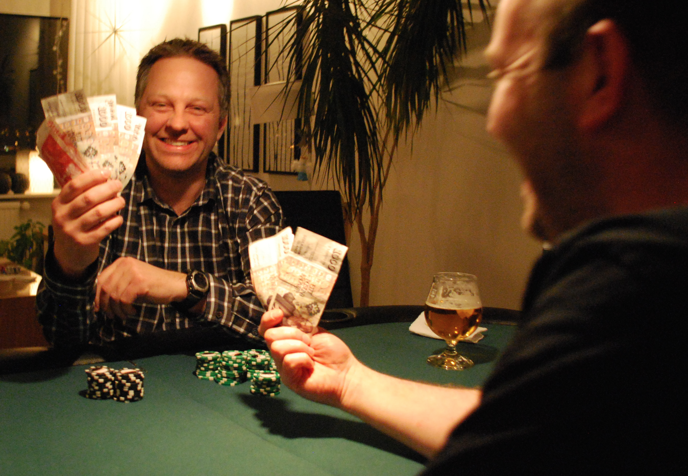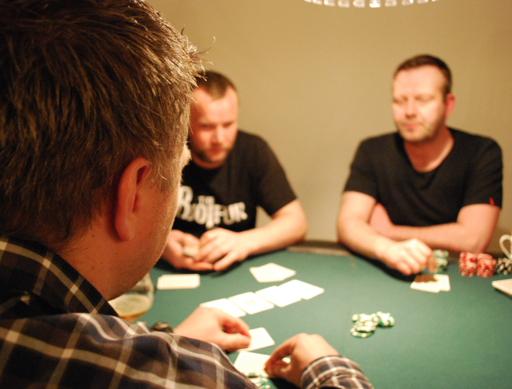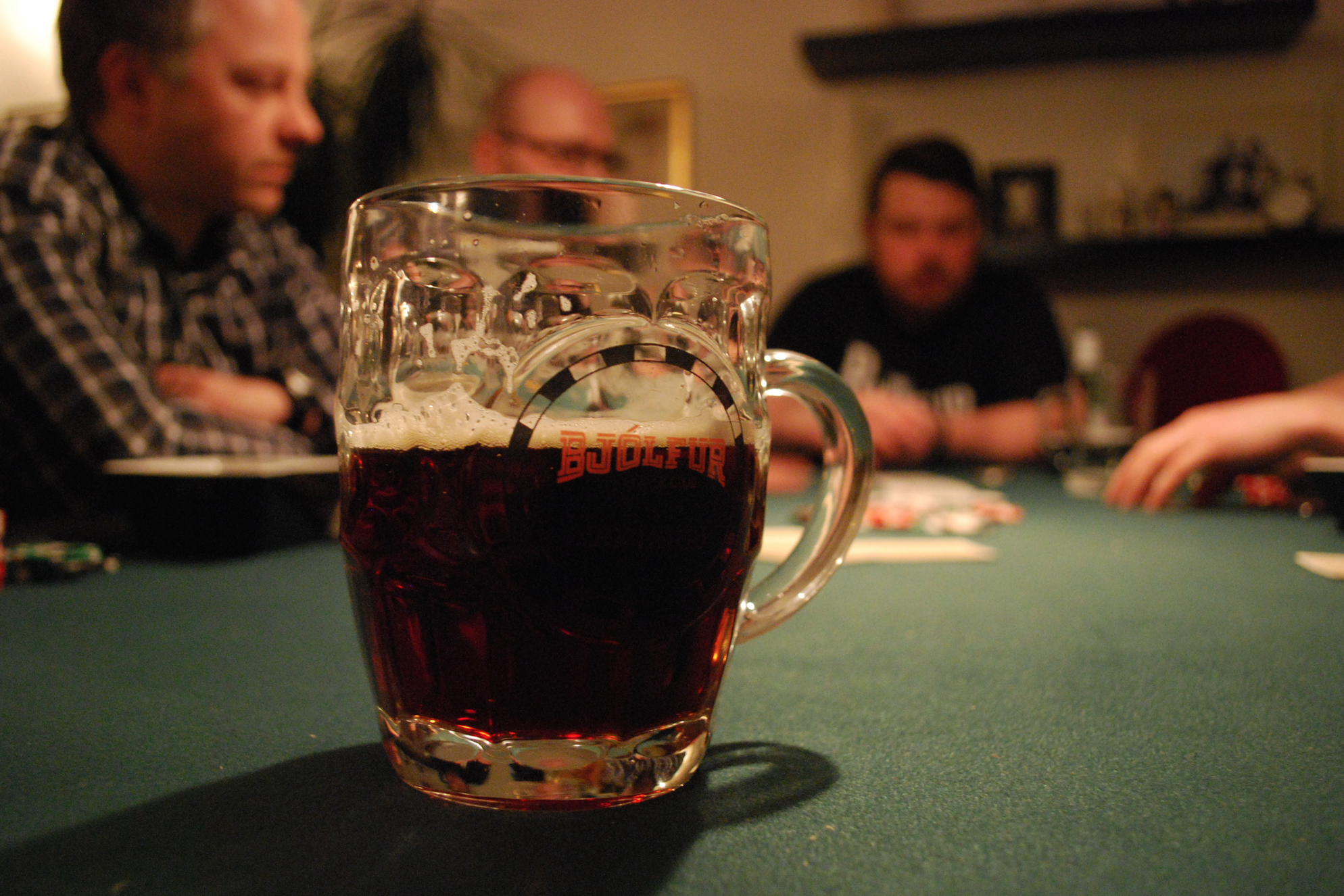 Eitt bjórstig skilaði sér í hús í kvöld og það var Bótarinn sem tók það. Svakaleg hönd þar sem hann blöffaði og fékk Timbrið til að folda á móti ég og taka sætan sigur og bjórstig. Hann jafnaði þar með Timbrið í bjórkeppninni þar sem þeir eru nú báðir með 3 stig og líta vel út…spurning hvort annar þeirra nær að taka stig í bústaðnum og stela sigrinum í lokin.