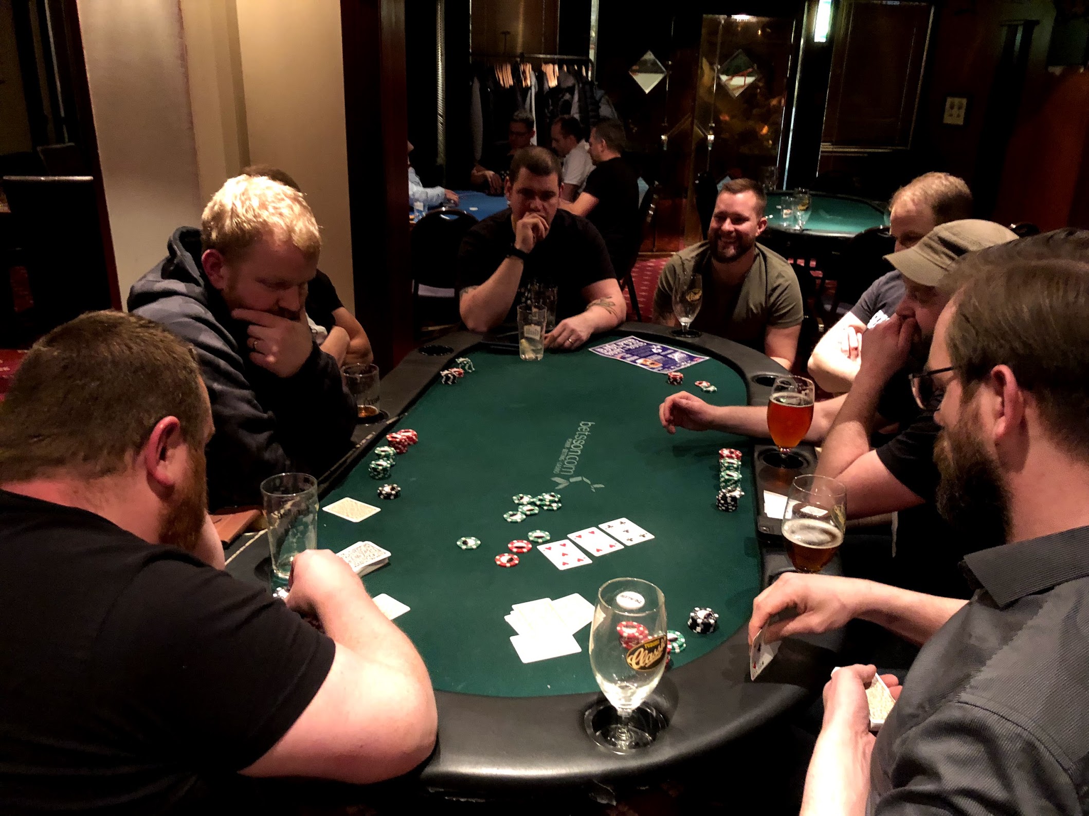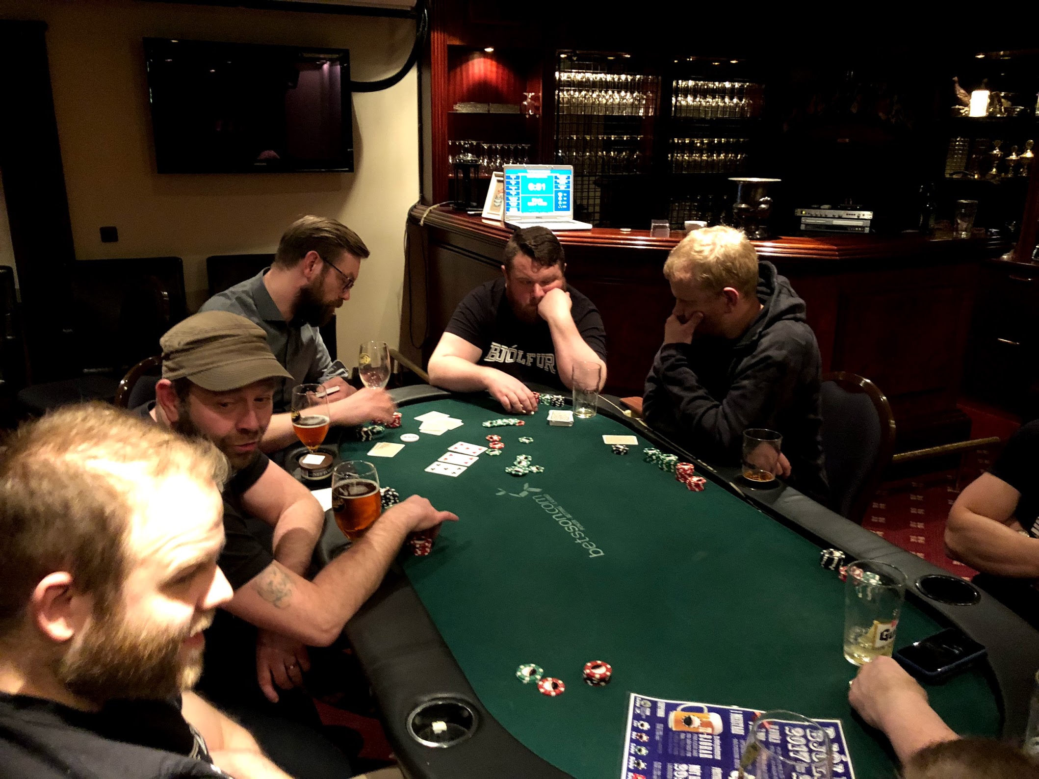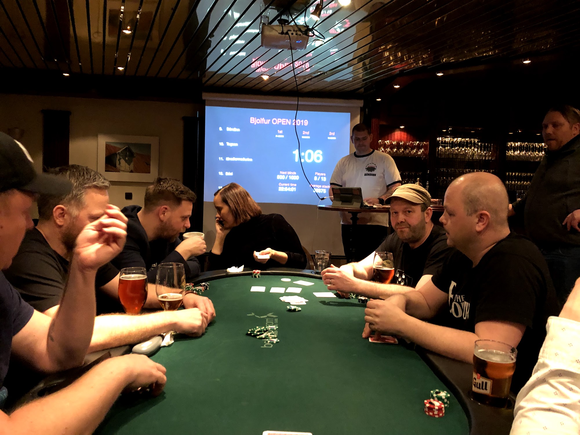Uppsetningin var einföld: 4.000,- krónur inn og engin endurkaup, tveir staflar af 15.000 í spilapeningum og hægt að sækja seinni staflann strax eða eiga hann inni ef maður skyldi detta út óvænt (en allir fengu hann eftir klukkutíma spil).