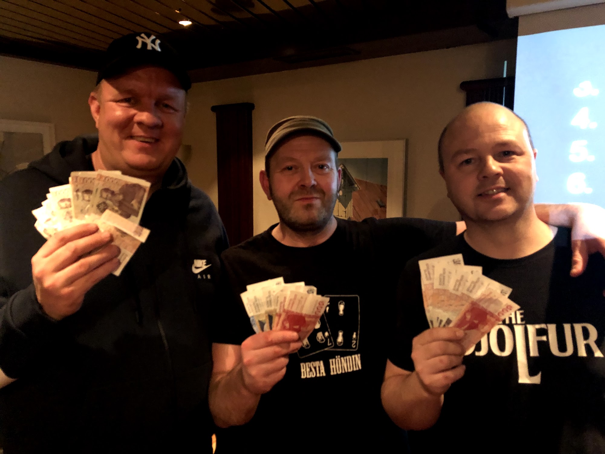 Það hjálpaði kannski Bjólfsmönnum að hafa ekki of marga gesti þannig að þeir áttu meiri möguleika að ná sér í verðlaun á mótinu 😉 en leikar enduðu þannig að Gummi nágranni náði sér í 3. sætið og Guðmundur (geestur) varð að láta sér annað sætið að góðu verða þar sem Mikkalingurinn spilaði allra best og stóð uppi sem sigurvegar í ár.