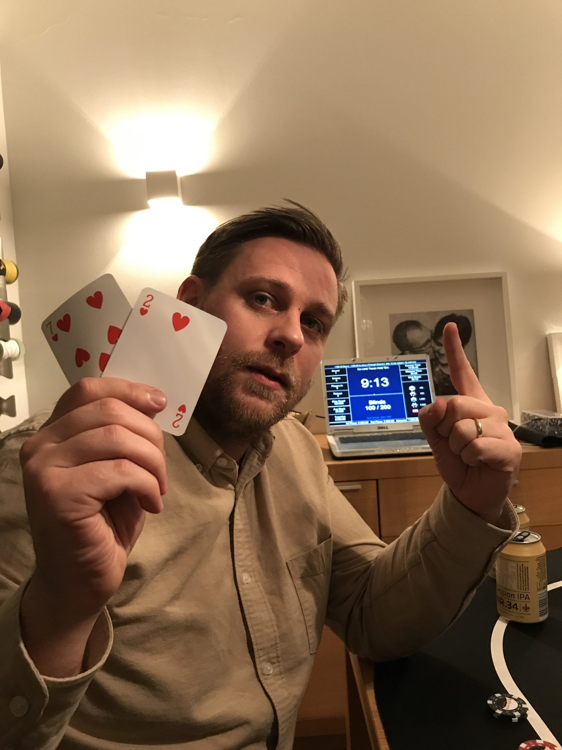 Timbrið átti ekki gott kvöld og yfirgaf borðið fyrstur. Hvalurinn ætlaði sér að stoppa heimamanninn en endaði næstur frá borði. Bensi fylgi á eftir og svo Killerinn. Þá kom að því að Iðnaðarmaðurinn varð að yfirgefa spilið eftir að hafa verið safnandi spilapeningum framan af kvöldi…hann var reyndar farinn að tala um að hanga á þeim eins og Hobbitinn en byrjaði á því þegar hann átti svo mikið að það gekk ekki upp 😉