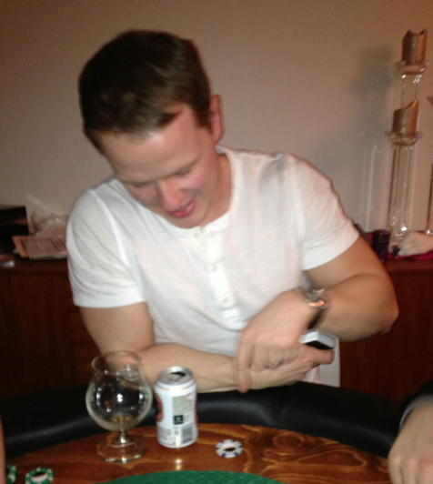 Höndin mín gaf mér góðan pott en eftir litla hækkun pre-flop sá Gummi mig. Á♠K♦Q♥ sýndu sig í floppinu og ég hækkaði og var séður. Útlitið var ekki gott en 7♥ á turn gaf mér möguleika og endaði spilið þannig að ég fór all-in og Gummi lagði frá sér ásaparið og dýrmætt stig í höfn hjá mér og þessari spennandi hliðarkeppni.