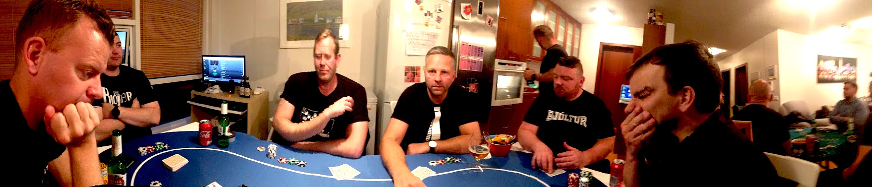 Lomminn mætti sérstaklega og aldrei lognmolla í kringum hann, enda fór hann mikinn eins og honum einum er laginn og mætti segja að það hafi verið kominn góður lommi í hann þegar leið á kvöldið 😉 Ég sá hann fara hamförum í leikþættinum þegar Massinn sagði hann stórann þegar hann var í raun lítill og gat ekki hækkað pre-flop…K5K kom í boð og Lominn var fljótur að tékka enda hundfúll yfir að hafa ekki fengið hækka áður…Massinn tékkaði og 5 kemur í borð og Lominn leikur sama leik og Massinn tékkar líka…2 kemur á river og Lomminn hreytir “all-in” út úr sér sem endar á því að Massinn sér og Lominn sýnir 55 og því með fjórar fimmur…spurning hvort maðurinn sé ekki að fá Óskarverðlaunatilnefningu 😉