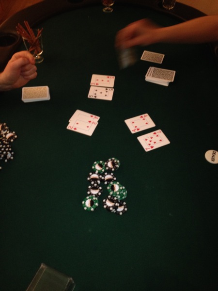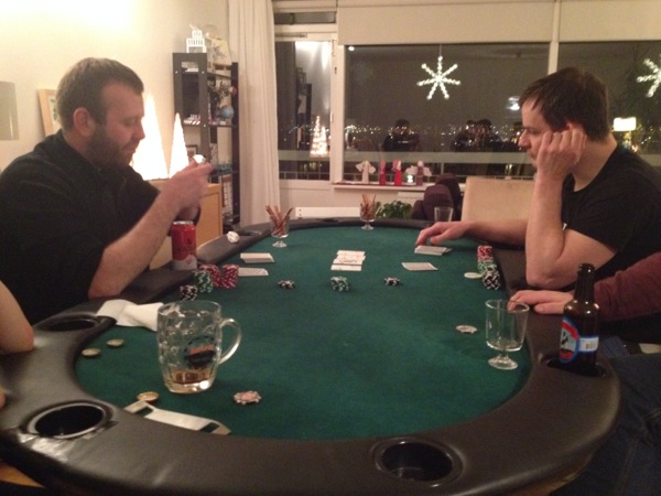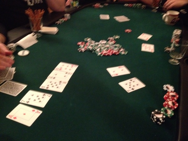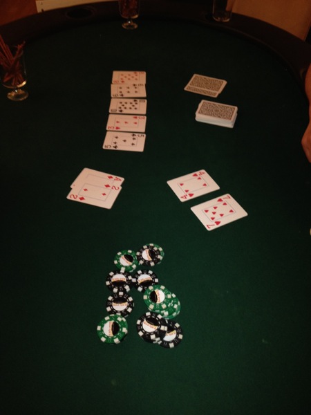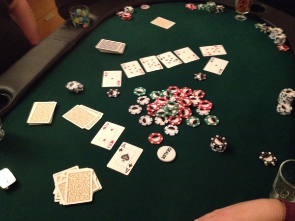 Það var mikið af lágum spilum sem komu í borð en samt voru menn nú að berjast með húsum, fernum og fleiri góðum höndum út kvöldið.